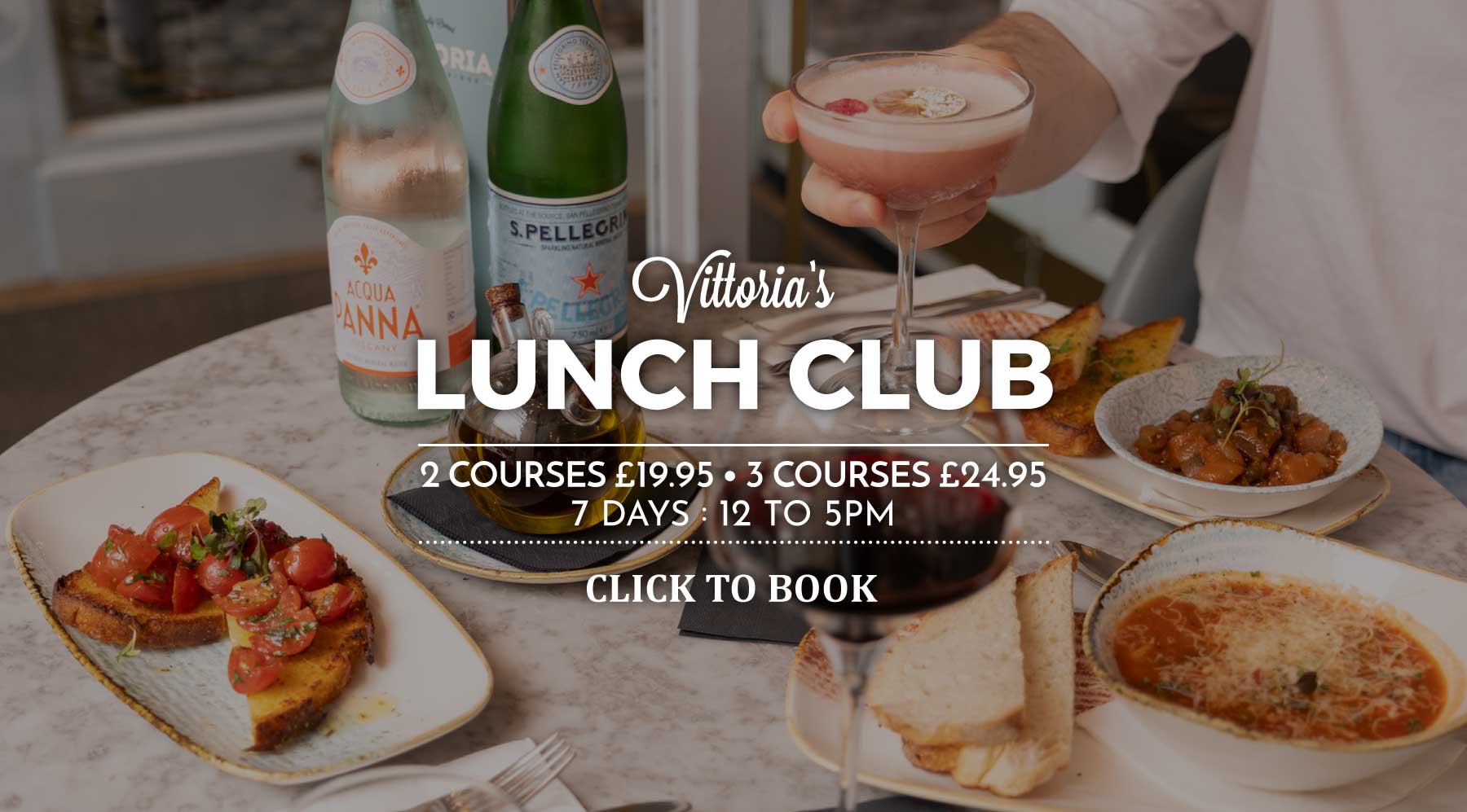 Vittoria’s is open daily and is the perfect place for a quick bite of lunch or pre-theatre supper. During the day, the atmosphere is just right to meet up with friends for coffee or watch the world go by. Then, later on, as the working day ends, the mood becomes more vibrant as we swing into full operation for dinner.